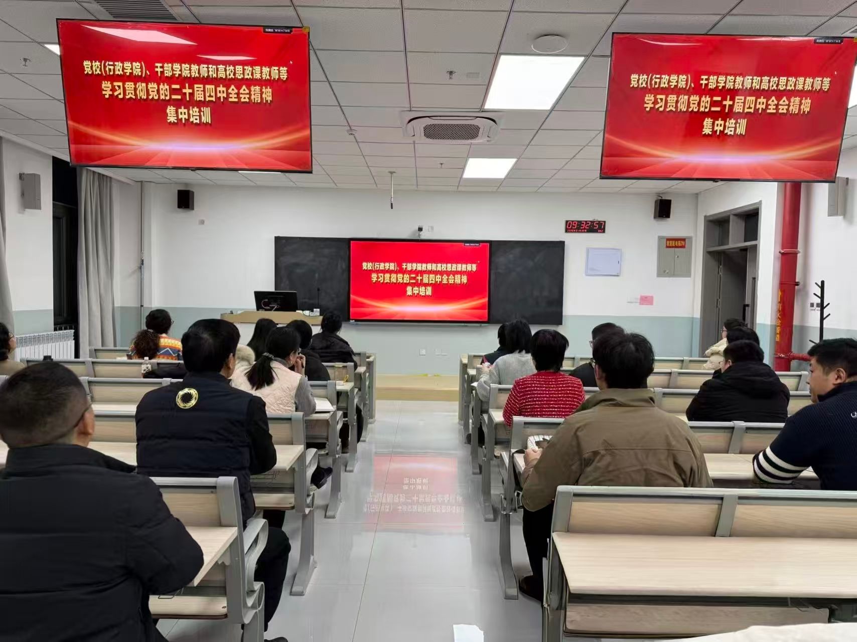 2025年10月20日至23日,中国共产党第二十届中央委员会第四次全体会议于北京举行。马克思主义学院迅速行动、主动作为,第一时间部署推进全会精神的学习贯彻工作,通过院党委理论学习中心组集体学习、各党支部专题研讨、思政课集体备课等多样化形式,推动全会精神真正入脑入心、落地见效,在全院范围内迅速掀起学习贯彻的浓厚热潮。